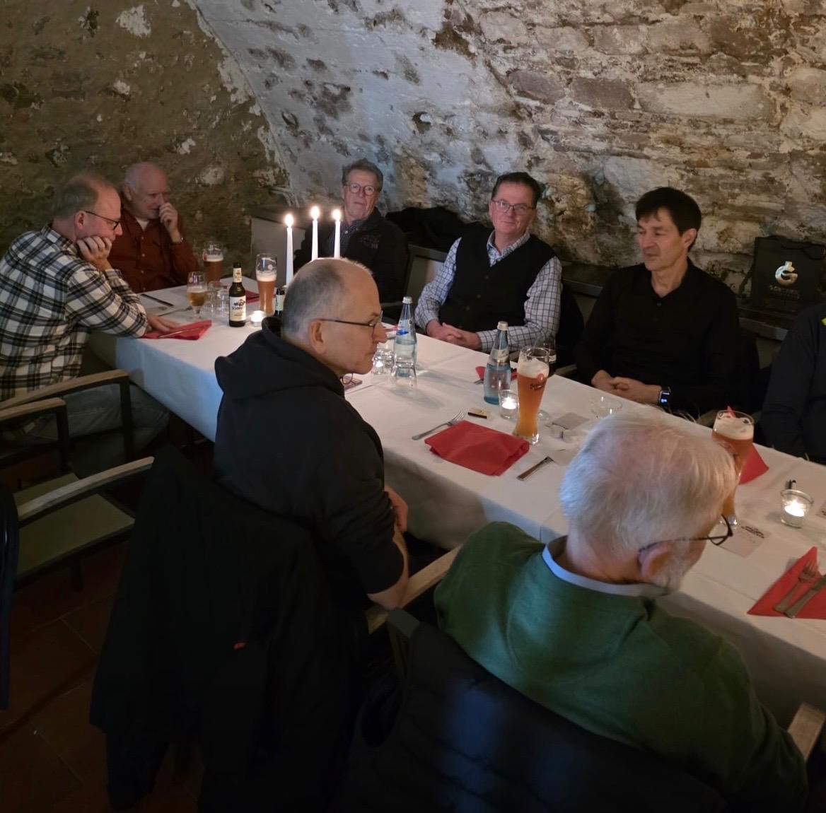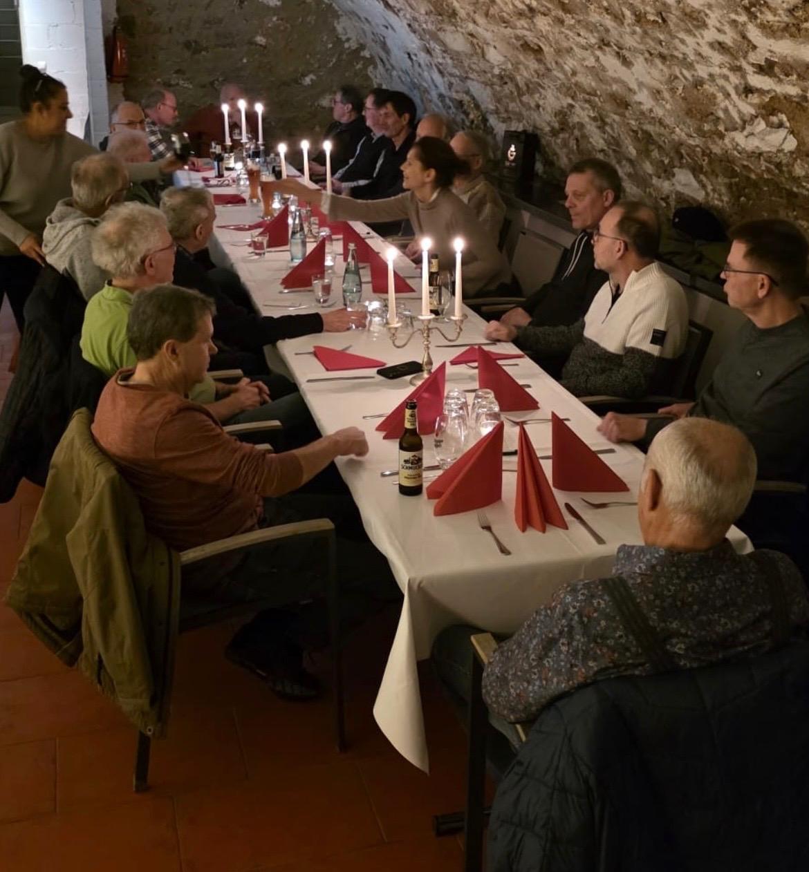 Am Freitag, den 12 Dezember fand unsere traditionelle Weihnachtsfeier unserer Gymnastikgruppe „Männerfitness“ statt. Dieses Jahr waren wir im „Marktkeller“ unter der Gaststätte „Altes Haus“ in Groß-Umstadt. Wir hatten ein reichhaltiges Buffet und eine viel Zahl von Getränken zur Auswahl. Die Übungsleiter*innen Rainer Skwara und Jutta Wilferth gaben einen Rückblick auf das laufende Jahr und eine Vorschau auf das neue Jahr. Zu dieser Veranstaltung trafen sich sehr viele der Übungsteilnehmer der Gymnastikgruppe. Dieses Jahr hatten wir viele Neuzugänge in unserer Gymnastikgruppe. In lockeren Gesprächen konnten wir uns noch besser kennen lernen.